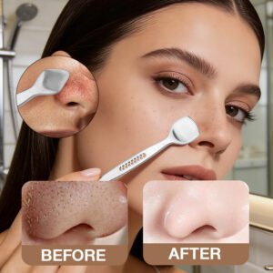 - Blackhead Removal:Gently glide the wide spatula over your nose/forehead to lift blackheads. Use the small tip for detailed areas like the sides of your nose.